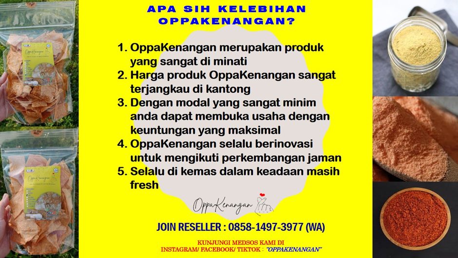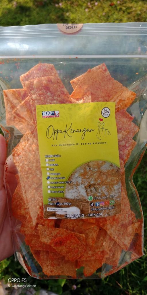 Produk yang menjadi oleh-oleh viral dari Cikarang Bekasi ini berbeda dari keripik opak kebanyakan, karena bentuknya kotak tipis sehingga membuatnya unik dan menjadikan teksturnya sangat renyah. Selain itu, opak ini diberi bumbu yang membuatnya kekinian dan disukai oleh banyak kalangan. Bumbunya sendiri sangat melimpah sehingga membuat keripik opak ini lezat dan bikin ketagihan, siapapun yang memakannya pasti tidak akan menyesal dan ingin terus membelinya.